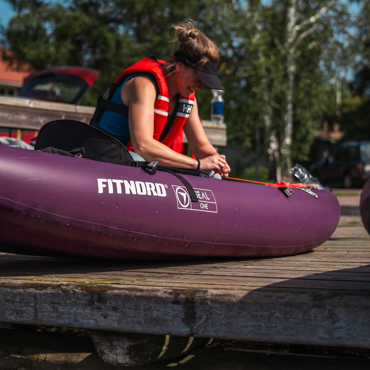 FitNord Seal One-kajakkens stive drop stitch-materiale er designet for å tåle hard bruk og bølger. Skroget holder formen uten å svikte, og det er vanskelig å få denne farkosten til å velte, selv om man prøver! (Det sies at FitNord-kajakker har padlet ned stryk, men vi oppfordrer ikke til dette uten tidligere erfaring med elvepadling.)