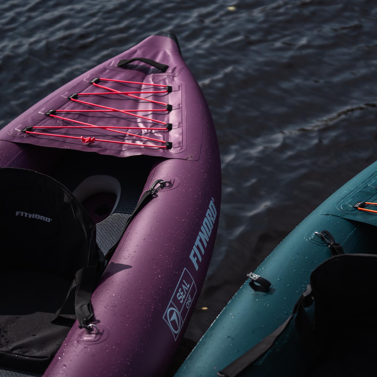 Seal One er tilgjengelig i mørkegrønn, mørk blå og mørk lilla. Hvis du ønsker å dra ut på vannet sammen med en venn eller familiemedlem, bør du vurdere den to-personers FitNord Seal Two-kajakken.